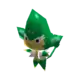 Simisage is a simian Pokémon that is primarily green. It has a pointed, bush-like crest on its head similar to a pompadour. The leaves that grow on this crest are bitter. Its ears are broad with light green insides, and it has oval eyes and a black nose. Simisage has furry, white eyebrows and shoulder tufts; and a cream-colored face, chest, hands, and feet. Its hands have five fingers, and its feet have three toes. Its tail is long and tipped with leaves. The tail is lined with tiny, sharp barbs, allowing Simisage to use it as bludgeon weapons. Simisage are prone to violently lash out at people and Pokémon for no reason.
