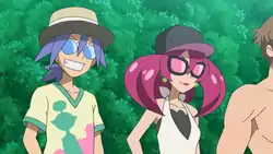 In A Photoshoot and the Abandoned Thrifty Megamart, Sina and Dexio arrived on Ula'ula Island. In the five months that passed since they arrived in Alola, the duo managed to gather sixty percent of Zygarde's Cells. Later, they spotted Sun using Stoutland Search and decided to ask him to help find the missing Cells.