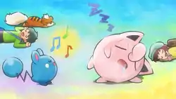 Jigglypuff sings a hypnotic melody, causing humans and Pokémon to fall asleep. | ||