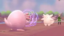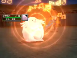 Chansey puts her hands in front of her and sings, making the opponent drowsy and fall asleep. | ||
