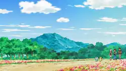 In the anime, Route 205 is a straight path covered in an abundance of flowers. It was featured in Unlocking the Red Chain of Events!, in which Ash and his friends were seen traversing the route while on their way to Daybreak Town for Dawn's next Pokémon Contest.