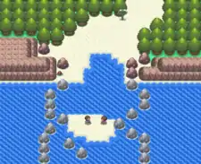 Route 219 begins at Sandgem Beach, a beautiful white-sand beach, directly south of Sandgem Town. A small path takes travelers south over a small sandbar before leading into Route 220. Despite the shortness of this route, a wide range of Water-type Pokémon inhabit the surrounding area. Two young Tubers challenge passersby.