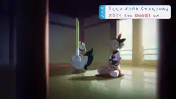 Sirfetch'd is an avian Pokémon that resembles a white duck, standing no taller than its pre-evolved form Farfetch'd and retaining its yellow beak, brown eyes, and eyebrow-like marking. Its legs and webbed feet are colored yellow, while the three-feather crest on its head and stubby tail are white. Its wings serve as humanoid hands, with the feathers at the end resembling fingers. It carries a massive leek in two parts, wielding the long, sharpened stalk as a lance and using the hard leaves as a shield.