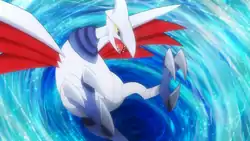 In Delibird's Dilemma, a Skarmory sent Meowth and Wobbuffet blasting off after being hit by a snowball thrown by Ash's Totodile.