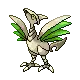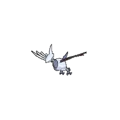 "An Armor Bird Pokémon with a steel-hard body and wings. It flies at speeds up to 186 miles per hour and slices enemies with sharp steel wings that grow dull over time. It grows new wings once a year, which regain their original sharpness. It's said that people used to use fallen wings for swords and knives. It can fly so quickly and freely because it has light, hollow bones."