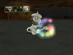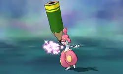 | Smeargle grabs its tail and waves it around, causing the image of a pencil to circle around the opponent while leaving behind a trail of pink sparkles. Smeargle then learns the last move used by the opponent. | |||