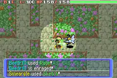 In Red Rescue Team, Blue Rescue Team, Sketch is a move with 1PP and 100% accuracy. The user targets enemy in the front and upon success will copy their most recent move, replacing Sketch with it. Sketch does not copy the Ginseng boost. The move will fail if the target's last move was since forgotten, or if it's Sketch, Struggle, or a move that calls other moves (except Sleep Talk, Snatch, and Mirror Move); although Sketch can technically copy itself if bounced back by Mirror Move. This move is affected by Taunt.