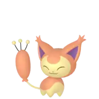 It is fascinated by moving objects and chases them. It is known to chase its own tail and become dizzy from it. Although it can be difficult to earn its trust, it is very popular due to its adorable looks and behavior. It can use the moves of other Pokémon through the use of Assist, its former signature move. It lives in holes in trees in tropical and temperate forests.