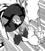 Squirtle runs and jumps at the opponent with its head down and strikes it with its head, or Squirtle jumps into the air, becomes surrounded by a silver aura, and slams its head into the opponent. | ||