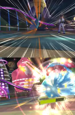 Blastoise slams its head into the opponent. Sometimes, its body becomes surrounded by a silver aura when using the attack or a white aura briefly flashes from Blastoise's body and then it charges towards its opponent and slams its head into the opponent. | ||