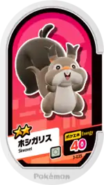 Skwovet (Japanese: ホシガリス Hoshigarisu) is a Grade 2 Pokémon Mezastar tag. It is part of the third set.