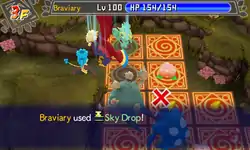 Braviary grabs the opponent with its talons and lifts them high into the air. It then speeds downwards and tosses the opponent onto the ground. | ||
