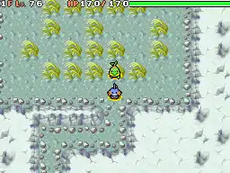 The turn limit is 1000. The enemies here have 150IQ. There is a 5% chance that an item generates sticky. There is water on floor 3 of 1st and 8th Station Passes, floor 2 of 2nd Station Pass and Summit Pass, and floors 3 and 4 of 9th Station Pass. There is light darkness starting with 7th Station Pass. There is random weather on floor 2 of Summit Pass. The player cannot be recsued if knocked out in this dungeon.