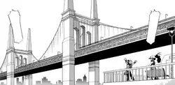 The Skyarrow Bridge (Japanese: スカイアローブリッジ Skyarrow Bridge) is a long suspension bridge that connects the southeastern part of Unova via the Pinwheel Forest to Castelia City in central Unova. The bridge serves as a means of transportation into and out of Castelia City.