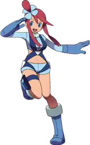 Skyla (Japanese: フウロ Huuro) is a pilot who is the Gym Leader of Mistralton City's Gym, known officially as the Mistralton Gym. She specializes in Flying-type Pokémon. She gives the Jet Badge to Trainers who defeat her.
