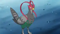 | Unfezant is Skyla's second seen Pokémon. She was first used to battle Black in a Gym battle. In the battle, she managed to drive his Costa back into his Poké Ball but was defeated by his Tula. During the battle against the Shadow Triad, Unfezant battles alongside Lenora's Pokémon to protect the Dark Stone.