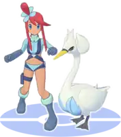 Swanna is Skyla's only known Pokémon. Alongside Flint's Infernape and Acerola's Palossand, it battled Bettie's Pikachu, Iris's Haxorus, and Barry's Piplup. The outcome of the battle was left unknown. None of Swanna's moves are known. | ||