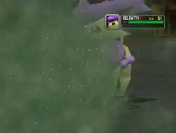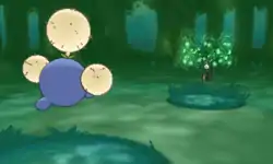 The yellow spots on Shiinotic's head glow brightly. Shiinotic then releases a blanket of glowing yellow spores from the yellow spots that put the opponent to sleep. | ||