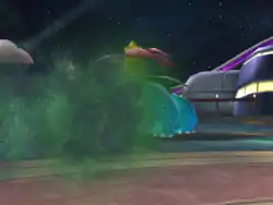Venusaur releases a seed from the back of its bulb at the opponent. The seed explodes above the opponent and releases spores from it, making the opponent fall asleep. | ||