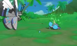 | Vivillon releases a blanket of light-green spores from its wings that put the opponent to sleep. | |||
