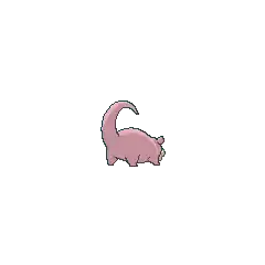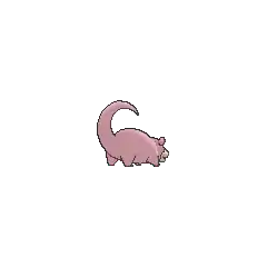 Slowpoke is a pink Pokémon that resembles a cross between a salamander and a hippopotamus. It has vacant eyes that never seem focused, curled ears, and a rounded, tan muzzle. It has four legs, each of which ends in a single white claw. Its long, tapering tail has a white tip. This tail drips a sweet, sappy substance that is attractive to many species of fish. Slowpoke uses the tail as a fishing lure. The tail often breaks off, but it will grow back. In Alola, its tail is often dried and used in home-cooked stews.