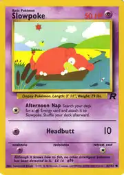 Slowpoke (Japanese: ヤドン Yadon) is a Psychic-type Basic Pokémon card. It is part of the Team Rocket expansion.