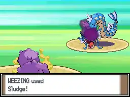Weezing spews dark brown sludge at the opponent from the mouth on its larger body or from both mouths at the same time. | ||