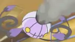 The large flame on the top of Chandelure's head dissolves into thick gray smoke and it leans forward so the top of its head is facing the opponent. It then releases a stream of thick gray smoke from the top of its head at the opponent. | ||