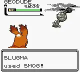 | Slugma opens its mouth and releases a thick, gray smoke from it. | |||
