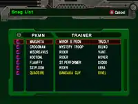 The Snag List is a P★DA feature that appears in Pokémon Colosseum and Pokémon XD. It is list of the Shadow Pokémon created by Cipher that the player has and is able to snag.