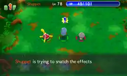 In Red Rescue Team and Blue Rescue Team, and Explorers of Time, Darkness and Sky, Snatch is a move with 17 PP. The user gives itself Snatch status condition for 5-6 turns, allowing them steal certain moves from any Pokémon on the floor, ally or enemy. There can be only one Pokémon on the floor with this status; using a move will remove the status from whoever currently has it. While the Snatchable moves are mostly the same as in main series, there are some differences: Psych Up cannot be snatched, while Aqua Ring, Healing Wish, Lucky Chant, Lunar Dance and Magnet Rise can be. This move is affected by Taunt.
