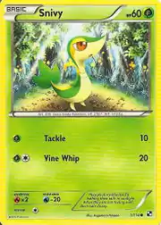 Snivy (Japanese: ツタージャ Tsutarja) is a Grass-type Basic Pokémon card. It was first released as part of the Black & White expansion.
