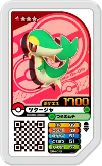Snivy (Japanese: ツタージャ Tsutarja) is a Grade 1 Pokémon Ga-Olé disk. It is part of the fourth Grand Rush set.