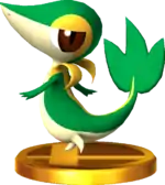 NA: Along with Ekans and Onyx, this Pokémon is considered to be a snake Pokémon, even though it has two legs. When it evolves into Serperior, however, it sheds those legs. In Smash Bros., Snivy unleashes Razor Leaf on fighters, sending sharp leaves flying and damaging anything in range.