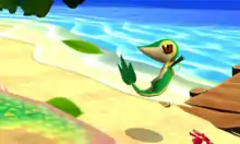PAL: Like Ekans and Onix, Snivy is known as a snake Pokémon. Unlike those Pokémon, it has two legs. When it eventually evolves into Serperior, though, it loses them. It attacks using Razor Leaf, which sends super sharp leaves flying into fighters in front of it, potentially hitting them over and over again.