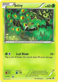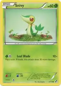 Snivy (Japanese: ツタージャ Tsutarja) is a Grass-type Basic Pokémon card. It was first released as part of the Black & White expansion.