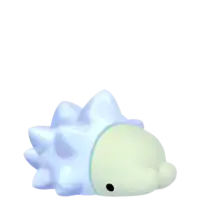Snom is a small, larval Pokémon. Most of its round white body is covered by a translucent shell of icy spikes. Its exposed head features two black eyes and round mouthparts. Four short legs are located underneath its body.