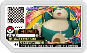 Snorlax (Japanese: カビゴン Kabigon) is a Grade 4 Pokémon Ga-Olé disk. It is part of the third Dash set.
