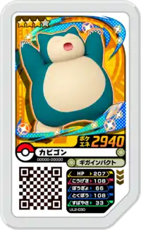 Snorlax (Japanese: カビゴン Kabigon) is a Grade 3 Pokémon Ga-Olé disk. It is part of the second Ultra Legend set.