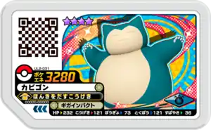 Snorlax (Japanese: カビゴン Kabigon) is a Grade 4 Pokémon Ga-Olé disk. It is part of the second Ultra Legend set.