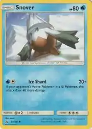 Snover (Japanese: ユキカブリ Yukikaburi) is a Water-type Basic Pokémon card. It was first released as part of the Ultra Prism expansion.