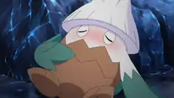 Candice has a collection of ice Pokémon in her Gym that includes multiple Snover, but the only one she uses in battle is the one that fought Platinum's Empoleon, which also happens to be the only one she caught. She was seemingly defeated by the Emperor Pokémon's Metal Claw, but managed to launch a Seed Bomb that landed on Empoleon's head, fainting her and resulting in a tie. She first appeared in Striking Out Snover.