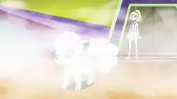 While it is hailing, a white mist forms around Alolan Vulpix's body, allowing it to hide within it and make it more difficult for its opponent to aim at it. | ||