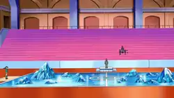 The Snowpoint Gym appeared in Striking Out Snover and To and Fro with Froslass, where Platinum entered the Gym in order to tell Candice about her plan of going to Lake Acuity to stop Team Galactic from capturing Uxie. However, it turned out that she was forced to clear the Gym before she could meet Candice. After quickly plowing through the Gym puzzle and Gym Trainers, Platinum reached Candice and started a Gym battle with her. Wanting to get to Lake Acuity as soon as possible, Platinum intended to finish the battle quickly.