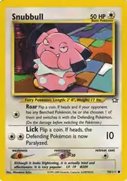 Snubbull (Japanese: ブルー Bulu) is a Colorless-type Basic Pokémon card. It is part of the Neo Genesis expansion.