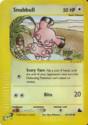 Snubbull (Japanese: ブルー Bulu) is a Colorless-type Basic Pokémon card. It is part of the Skyridge expansion.