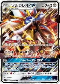 Solgaleo (Japanese: ソルガレオGX SolgaleoGX) is a Metal-type Stage 2 Pokémon-GX card. It was first released as part of the Sun & Moon expansion.