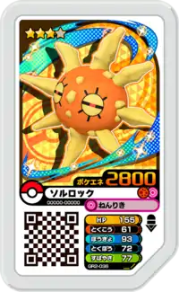 Solrock (Japanese: ソルロック Solrock) is a Grade 3 Pokémon Ga-Olé disk. It is part of the second Grand Rush set.