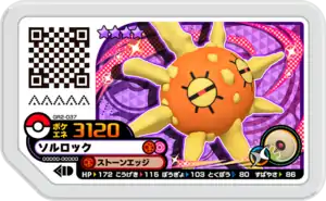 Solrock (Japanese: ソルロック Solrock) is a Grade 4 Pokémon Ga-Olé disk. It is part of the second Grand Rush set.