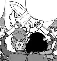 | Mega (Japanese: メガ Mega) is a Pokémon belonging to Casey. One year prior to the Sword & Shield chapter, it was stolen by Sordward and Shielbert at the Slumbering Weald. | ||